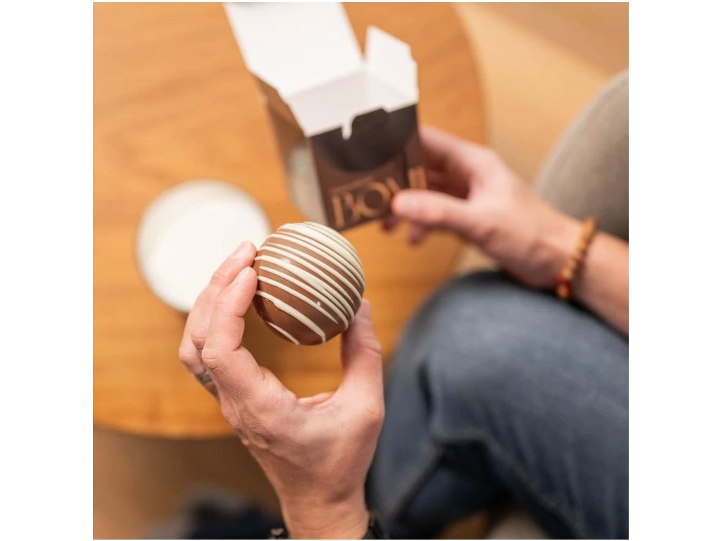 Ideální pro chladné večery, kdy toužíte po šálku hřejivé pohody. Čokoládová Bomba je také skvělým dárkem pro vaše blízké – potěší nejen chuťové buňky, ale i oči.