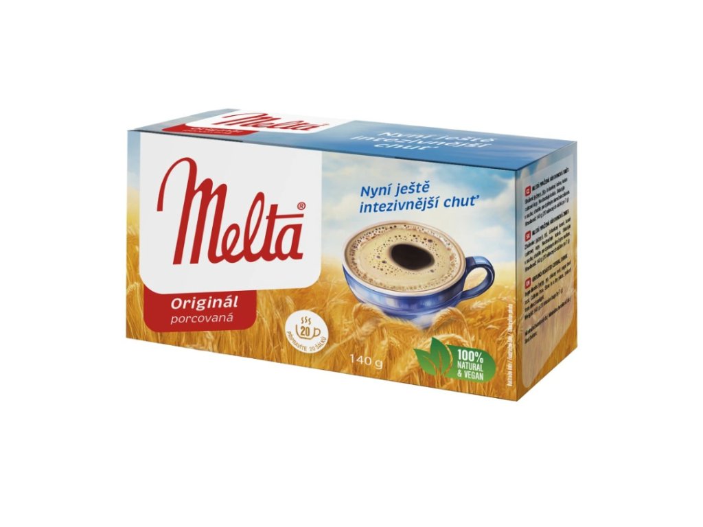 Tradiční zdravá kávovinová náhražka. Tato směs kořene čekanky obecné, cukrové řepy, žita a ječmene umožňuje připravit lahodný, zcela bezkofeinový nápoj, vyrobený z přírodních hodnotných surovin. Vzhledem k tomu, že neobsahuje kofein, je melta vhodná i pro maminky a děti.