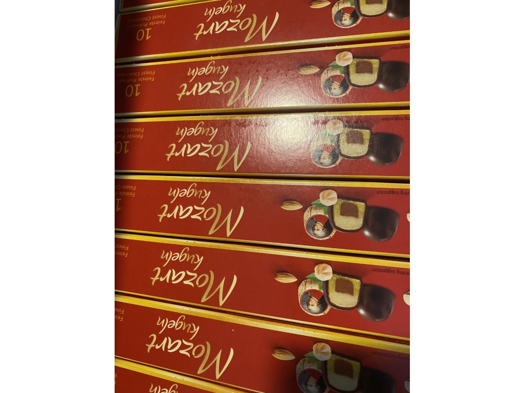Čokolády plněné pistáciovým marcipánem 34%, marcipánem 22% a lískovými oříšky 12%, potažené mléčnou čokoládou 16% a hořkou čokoládou 16%.