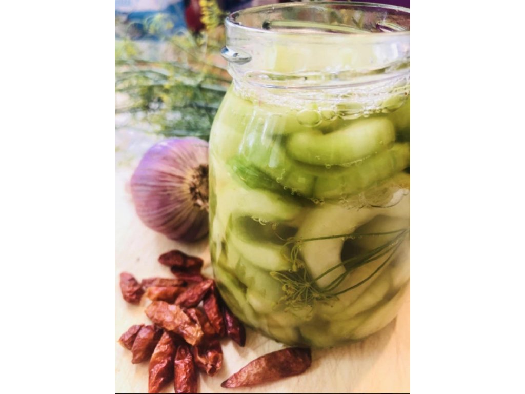 Složení: okurky 79%, ocet, pitná voda, med 3,6%, sůl, česnek, chilli 0,1%, hořčičné semínko, kopr